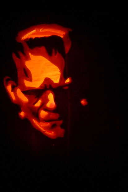 La idea aquí es reducir su fotografía a dos diferentes imágenes en blanco y negro donde los puntos de rotura entre negros y blancos están en diferentes lugares a lo largo de la escala de grises original, para que cuando se combinan crean una imagen de tres etapas (oscuro-moderada-brillante). Las partes más brillantes de la imagen son donde la calabaza se cortará totalmente, mientras que las partes oscuras son donde la corteza va a permanecer, bloqueando la luz. La parte moderada de la imagen es donde se quita la corteza, sino dejar parte de la pulpa de calabaza. A diferencia de la corteza, la pulpa es translúcida e ilumina una naranja fantasmal cuando una vela está dentro.