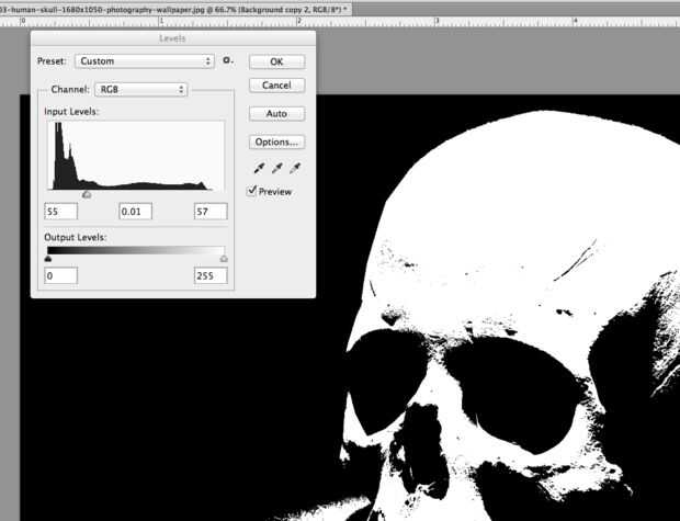 Esta es una elección importante porque va a dictar cómo sale su Jack-o-Lantern, así que arrastre los cursores de alrededor para encontrar lo que te gusta. ¿Está creando un patrón blanco y negro que te agarra? ¿Está consiguiendo grandes zonas de blanco y negro y la minimización de áreas donde hay un montón de pequeños píxeles? Si usted está haciendo un retrato, se captura su esencia--¿reconocerlos?