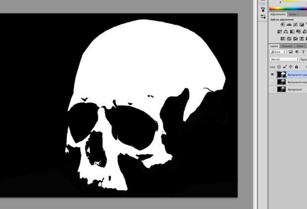No importa qué, si está trabajando desde una imagen en blanco y negro, allí están obligados a ser un montón de píxeles perdidos para limpiar. Editar la capa con la herramienta Pincel para deshacerse de ellos. Tratar de conservar la forma esencial tanto como sea posible, pero elimine los detalles ajenos. Recuerda que vas a tener que tallar las formas, para no ser demasiado ambicioso. Sin embargo, recuerde que para esta capa que sólo vas a pelar la piel opaca de la calabaza en lugar de cortar a través de él, así que si quieres detalle este es el lugar para él.