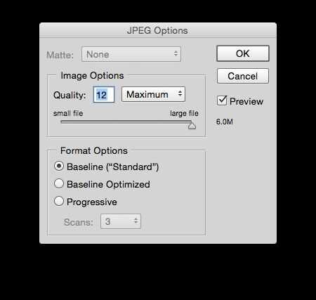 - En la ventana de configuración que se abre, establezca su calidad en 12.