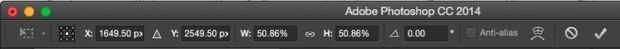 Medida que escala la imagen, asegúrese de ver en la parte superior de la ventana de Photoshop. Los campos W y H mostrarán el ancho y el alto porcentaje de tu foto. Mientras se mantiene pulsada la tecla Shift, deben coincidir con esas cifras. Esto le dice que su imagen no es estirar raro.