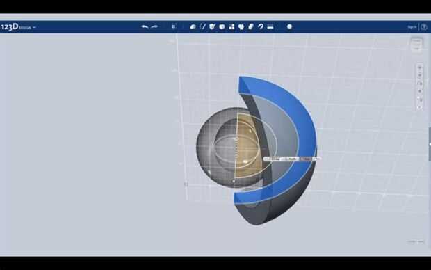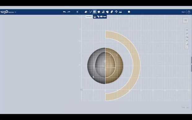 Utilice la herramienta de arco de 3 puntos para crear el perfil del huevo-que lleva el envase interno. Cierran el perfil mediante la herramienta polilínea. Seleccione la sección exterior de la esfera. Utilice la herramienta de revolución a girar la sección transversal de la esfera exterior. Si usted quiere ser capaz de ver a través de la esfera, cambiar el material a algo claro.