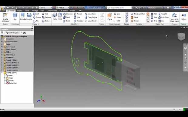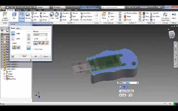 Esboce el contorno de la pieza central que mantendrá la unidad USB. Saca tu diseño en 2D para que sea 3D.