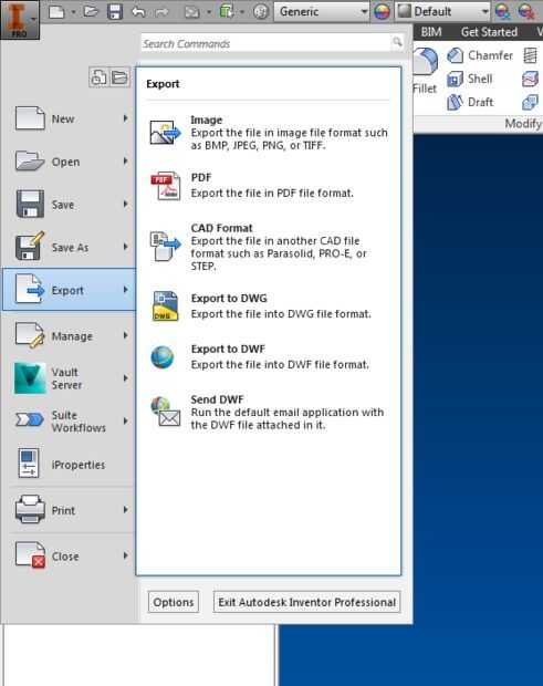Una vez que una parte ha sido creada y está lista para la impresión puede seleccionar "Exportar" desde el menú de aplicaciones y luego "Formato CAD". En el cuadro de diálogo que aparece, seleccione. STL en el menú desplegable "Guardar como tipo".