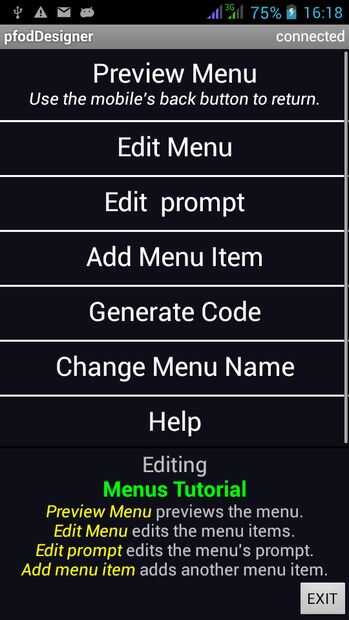 Elija la opción de menú. Esto añade un botón de menú y abrirá la pantalla de edición para este botón.