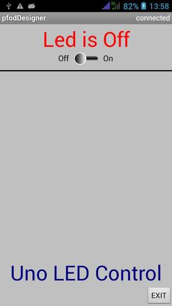 Ahora completa este submenú Agregar un elemento de menú para encender y apagar D13 y establecer un indicador de menú. (ver el Diseñador de menús de Android/Arduino para principiantes cambiar cosas dentro y fuera de tu móvil para obtener más información). Cuando termine de volver a la edición subMenu_LED pantalla y presione vista previa subMenu_LED para previsualizar el diseño del submenú.