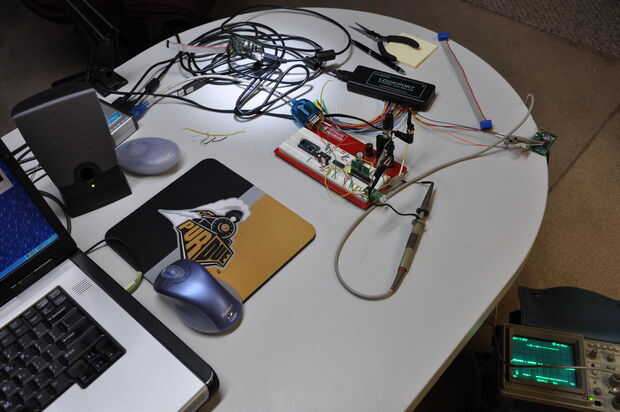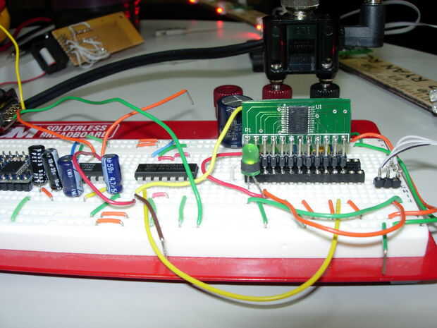 Me tomó dos días para la soldadura de las juntas poco ocho. Tomó otro día para averiguar resistor de pull-up que R6 (ver esquema) fue meterse conmigo. Supongo que el resistor que R6 no es necesario. Estaba preocupada después de leer la hoja de datos y se indica que no hay ningún micro internos pull-UPS en esta entrada de pin. En mi diseño, el pin es activamente conducido todo el tiempo de todos modos por lo que un pull-up no es realmente necesario después de todo.