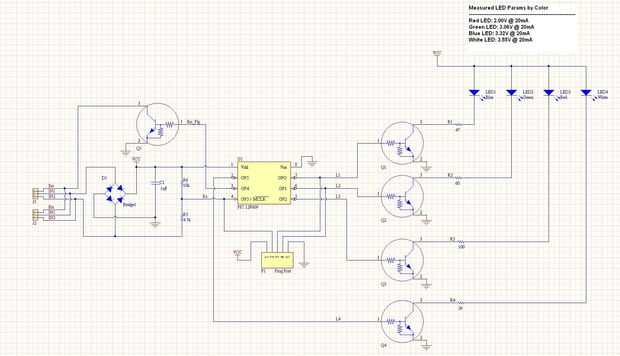 Utilizando estos cuatro LEDs para llenar la lámpara, se suman a costar tanto como el micro en 82 centavos de dólar! ¡ Ay!.