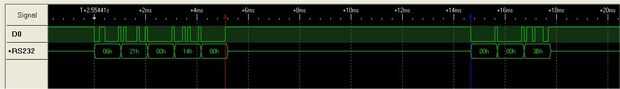 Comunicación a cada lámpara se archiva mediante el envío de paquetes de datos de 8 bytes. Cada paquete de datos termina con una suma de comprobación - así que en realidad, hay siete bytes de datos además de una suma de comprobación final. A 9600 baudios, un paquete de datos tarda unos 8 milisegundos en llegar.