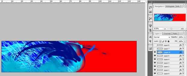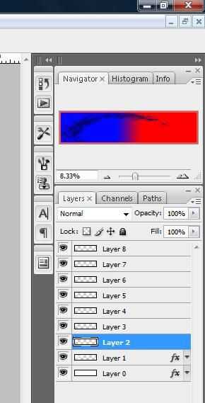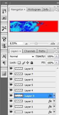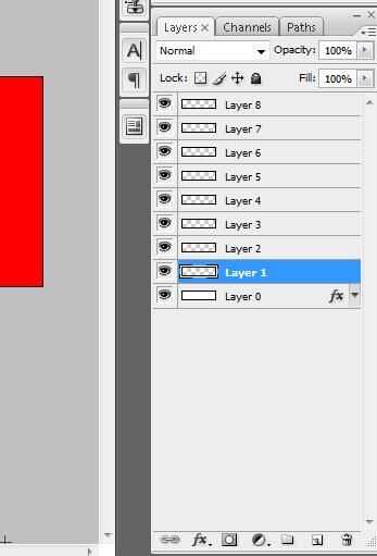 1. 1) Inicio agregando 8 capas más o menos. Se puede ir uno a la vez si quieres. Estos serán todos los tonos de azul, especie de. 2) haga clic en el capa 1 para comenzar.