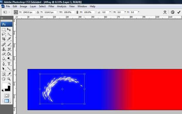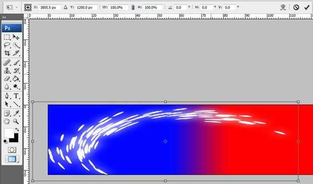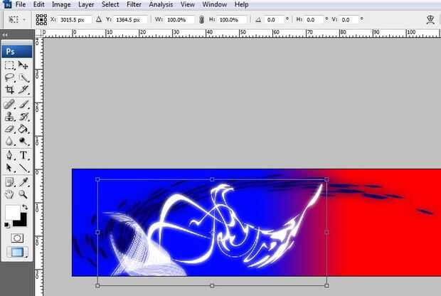 6. 9) ahora arrastre las cajitas en las esquinas y bordes para abarcar un poco en el lado rojo. Asegúrese de que cubre a través del tablero (hacia arriba y hacia abajo). Mis valores exactos en el menú de transformación libre se etiquetan, si quieres que sea exacto. (Puede introducir valores y ubicación, en x, y, en vez de arrastrar las cajas. También celebración Mayús mientras arrastra las esquinas mantendrá la escala.) 11) haga clic en la casilla de verificación para guardar la transformación.