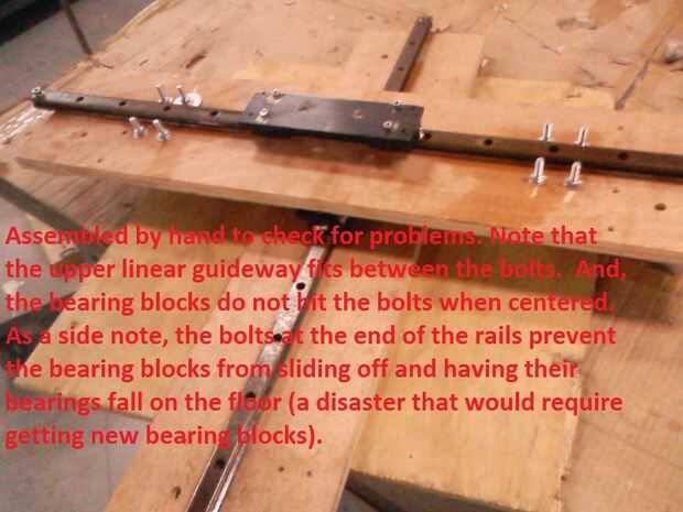 Poner todos juntos libremente para confirmar que cada componente esté obstruido y que cumplan con su función. Mover manualmente los conjuntos de bloques de rodamiento para el rango completo de movimiento. Buscar posibles problemas.