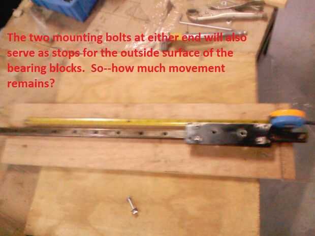 Los bulones, que montan los raíles también servirá en una parada de física para los bloques. En otras palabras, no se deslice más allá de los pernos en cada extremo de la guía (suponiendo que la cabeza del perno reside en la superficie como se muestra en este diseño.