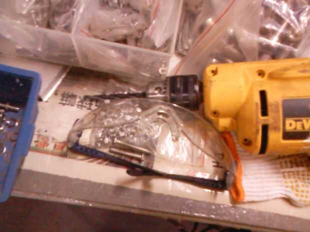 Después de taladrar cuatro orificios, donde se podrían acceder a las tuercas en el lado opuesto, volver al nivel del suelo para recuperar los pernos.