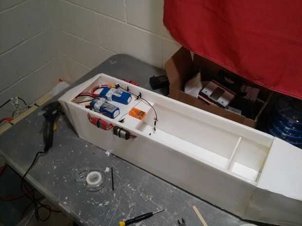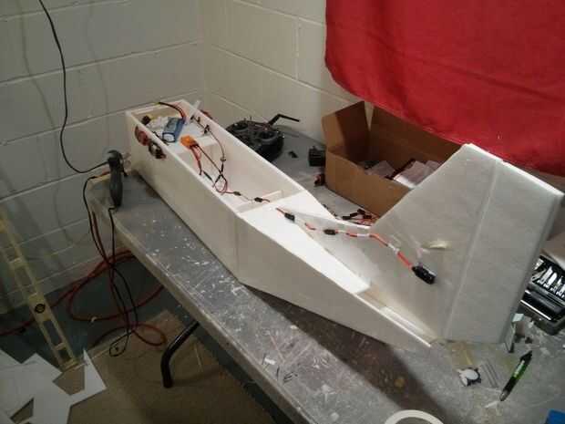 También había pegado en el estabilizador vertical y había pegado el servo del timón directamente sobre el estabilizador y bajó corriendo los cables en el fuselaje.