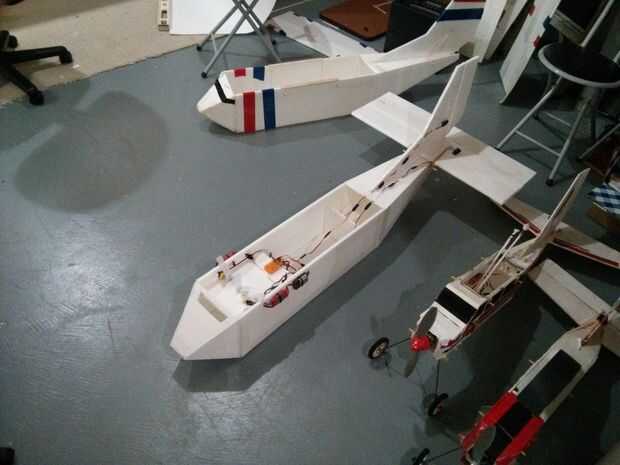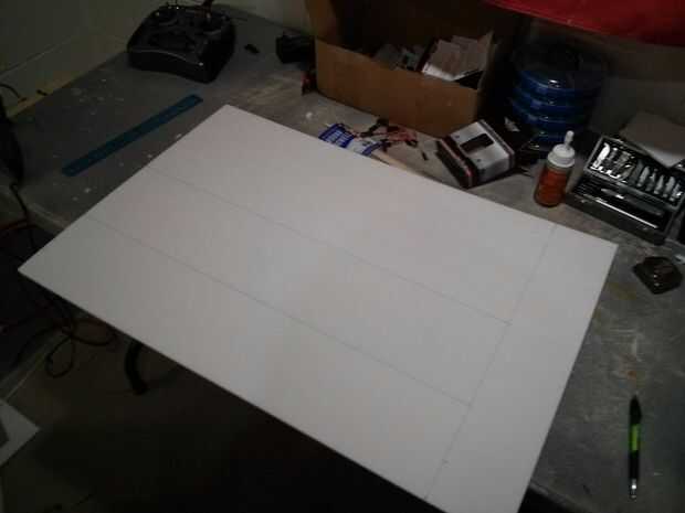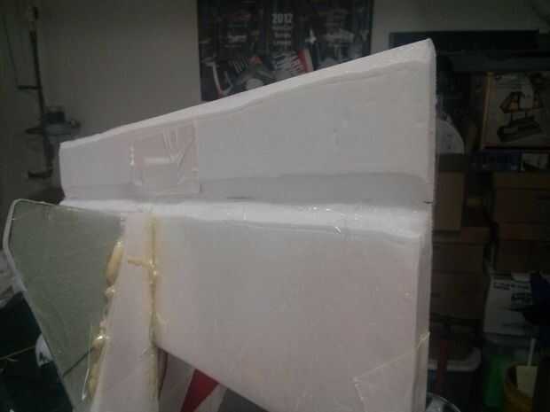 A continuación, usted puede recortar el estabilizador horizontal. Usé un cuchillo Exacto para cortar a la mitad de la espuma para hacer la bisagra para el ascensor. Luego, corté una diagonal de 45 grados a cada lado de la bisagra así que puede moverse libremente. También se utiliza para el timón, alerones y bisagras.