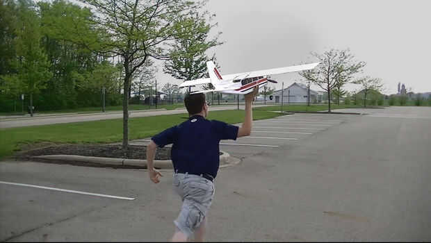 Ahora, con todo lo establecido como sería si fueras listo para volar, asegúrese de que todas las superficies de control son neutras, especialmente el ascensor. Tomar su avión y correr con él por encima de su cabeza y dejarlo ir para solo un segundo o dos. En esos segundos, ver si el avión sumerge su nariz hacia abajo. Si lo hace un poco, se equilibra bien. Si trata de zambullirá, es nariz pesada. Y si quiere subir y voltear hacia atrás, cola pesada.