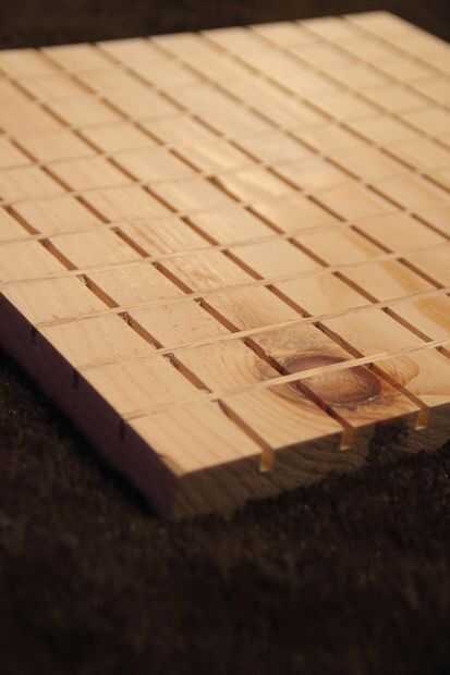 Después de cortar una cantidad suficiente de piezas, trate de ajuste seco una pieza o dos antes de pegarlas. No trato de hacer todo el tablero a la vez teniendo en cuenta que algunos de la cola sería seco antes de haber montado todas las piezas en su lugar. También puede necesitar usar un mazo de goma o un dispositivo similar para encajar estas piezas en el lugar. Una vez seco el pegamento, plano de arena el roble para que esté nivelado con el pino.