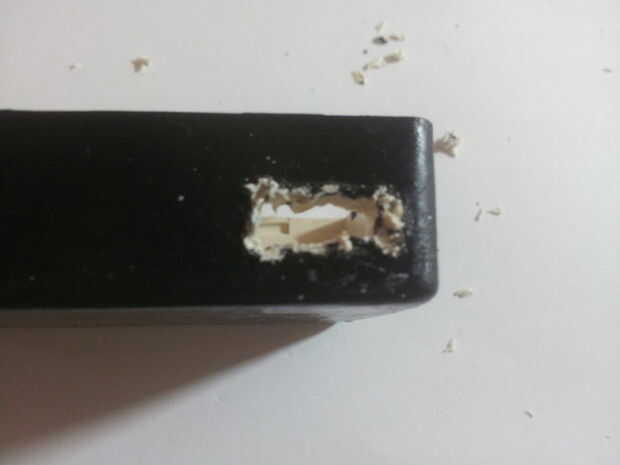Ahora mar a cada lado de la caja del tamaño de nuestro USB y mini USB las conexiones.