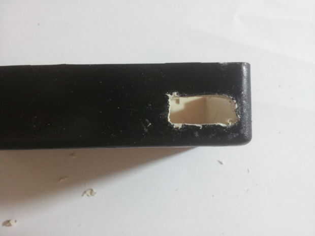 Corte los orificios donde marcaste, empezar haciendo un pequeño agujero en cada esquina, utilice una herramienta de archivo para hacer el agujero más bonito.