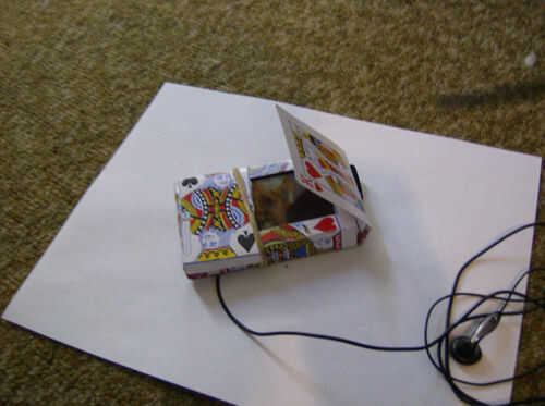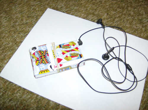 puesto que mi reproductor de MP3 resultada para no ser una versión popular, pocos casos de empresas y no disfrutar de mis opciones, decidí hacer mi propia. Después de algunas malas ideas, algunas buenas ideas, un montón de no y medio terminar casos, finalmente he creado uno que me gustó mucho. Se hace de algunas cartas que consegui por $0,50 en blanco, cinta y pegamento.