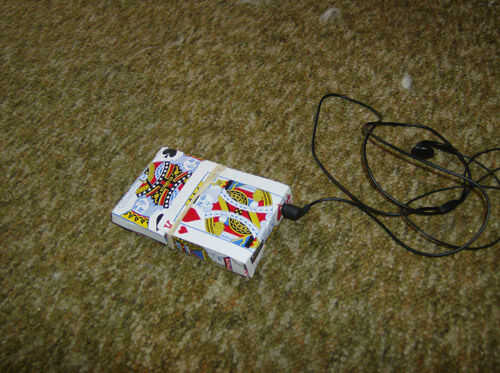 este es un protector acolchado estuche para reproductor de mp3 que también convierte los auriculares en el cuarto de pulgada, puede actuar como una caja del auge en el tirón de un interruptor y disfraza su reproductor de mp3 como un principios de los