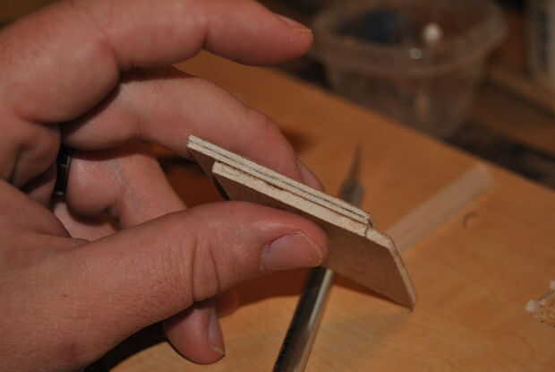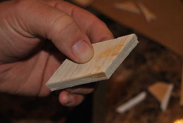 Una vez que el pegamento esté seco quitar y utilizar un papel xacto o arena para eliminar cualquier exceso de papel. Como un paso opcional puede biselar los bordes para hacerlas un poco más aerodinámico y menos arrastre y mejorar el rendimiento del cohete.