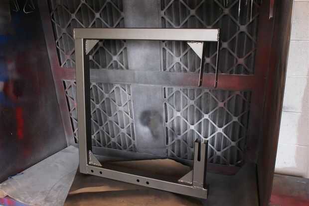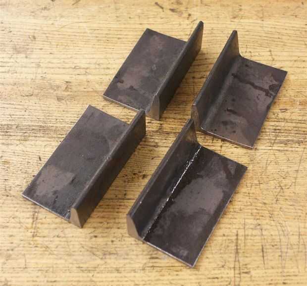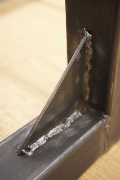 Casquillos de extremo de pipa cubren las aberturas de la tubería superior izquierda y abajo a la derecha. Salí de la parte inferior-izquierda abrir sin la tapa ya que se enfrentará la tabla y el soporte del yunque superior cubre la abertura de la tubería de la parte superior derecha. Los refuerzos se sueldan con autógena en el interior de cada una de las cuatro esquinas para aumentar la rigidez en la estructura.