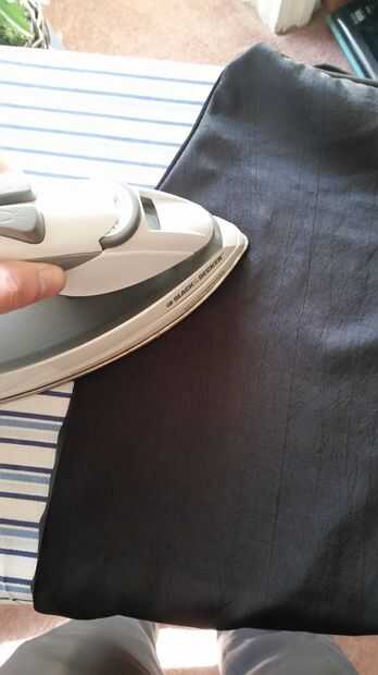 Usted podría haber planchado a la tela antes de este paso, pero me pareció innecesario. Pero después de que las piezas de vestido se girarán de adentro hacia fuera, debe plancharse. Asegúrese de tener los bordes muy bien y persuadir cualquier materiales ocultos de las esquinas.