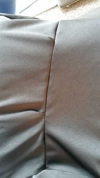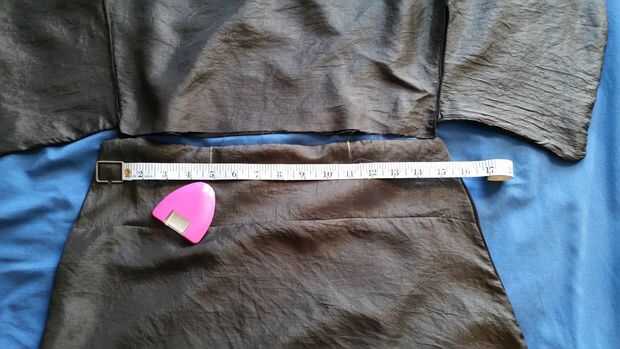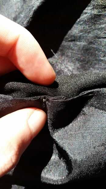 La siguiente cosa que usted puede notar es que la parte superior del plano D no coincide con la parte inferior del avión muy bien. Esto fue inesperado, pero puede ser fijado fácilmente. Simplemente pellizque algunas de la tela del plano D de fijación. Al hacer esto, medir donde quieras estas pizcas y cuánta tela "pellizcar hacia fuera". Esto funciona a mi favor y darle la parte inferior de la falda un aspecto plegado (ver fotos 4-6).