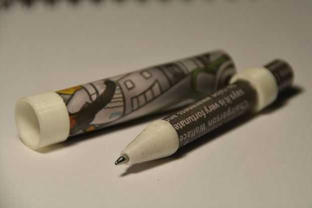 La pluma que he hecho es un compacto lleva alrededor, abriendo en un lápiz de tamaño completo con una tapa de la tapa.