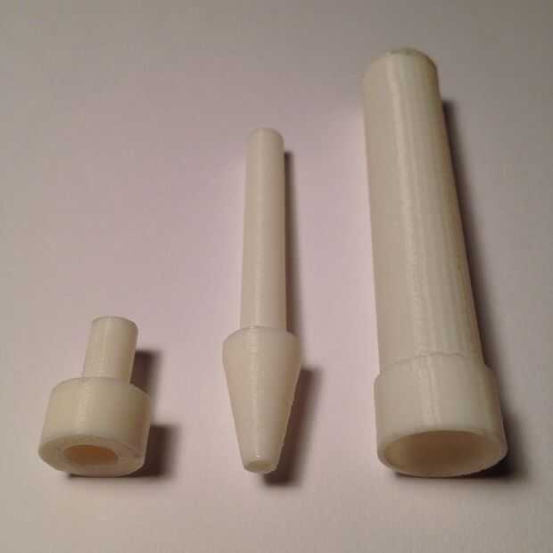 Usted tendrá que imprimir las 3 secciones de la pluma, cuerpo, final y la tapa. Los 3 archivos STL que se necesita otra vez pueden encontrarse aquí.