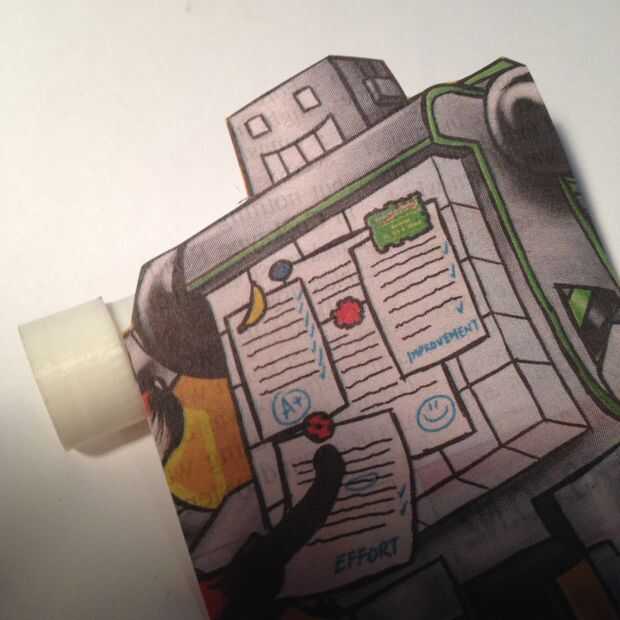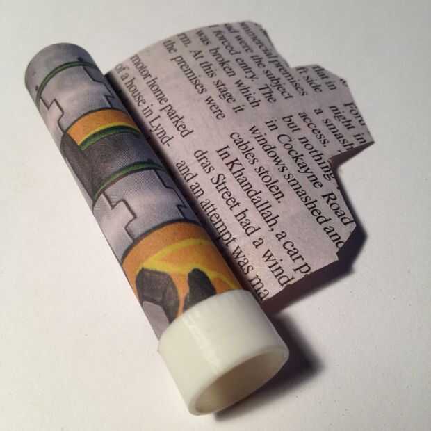 Para mi la pluma final decidí usar recortes de periódicos. Me gustó esta imagen de un robot, así que corte a la forma y pega alrededor de la pluma.