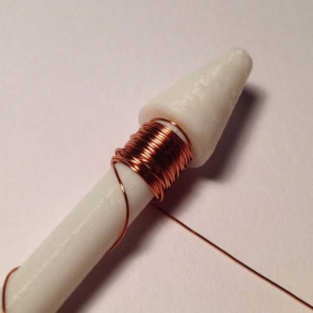 Jugar alrededor con diferentes materiales que tienes disponible. Tenía un juego alrededor con alambre de cobre y tela negra, pero no tenía suficiente material ya sea para terminar una pluma...