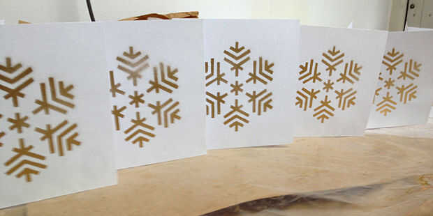 Para evitar que el exceso de pintura goteando sobre su hacer tarjetas que usted limpie su plantilla de vez en cuando.