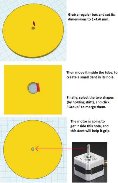 Siga los pasos anteriores para crear la estructura de la polea principal, incluyendo un hueco en el centro para hacerlo Sujete perfectamente el motor paso a paso (NEMA 17).