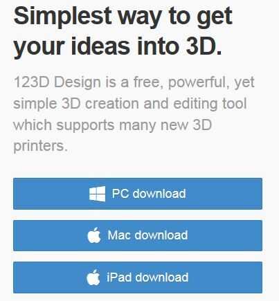 b. usted puede descargar el software de diseño en el sitio oficial del 123D de Autodesk. Existen tres visiones del software, incluyendo Mac, PC y cojín. Por favor seleccione según su propio dispositivo.