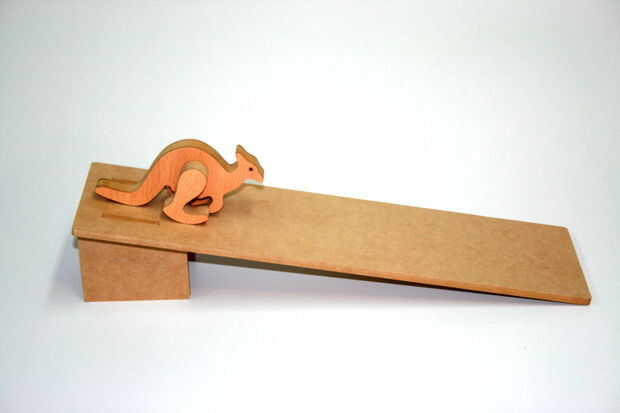 Primera vez que vi una madera, saltos, juguete canguro cuando estuvimos en Australia en 2008. No puedo encontrar mis fotos de ese viaje... así que miré en internet para encontrar algunas fotos de juguetes de canguro. Esta es una. Siento que no sé de donde esto vino de... fue hace unos años. (Por favor, déjeme saber si sabes donde esto vino de... Me encantaría atribuir la foto). Ver esta página web para otro ejemplo http://www.boranupgallery.com/gifts/small-gift-ideas/lj/hopping-kangaroo/