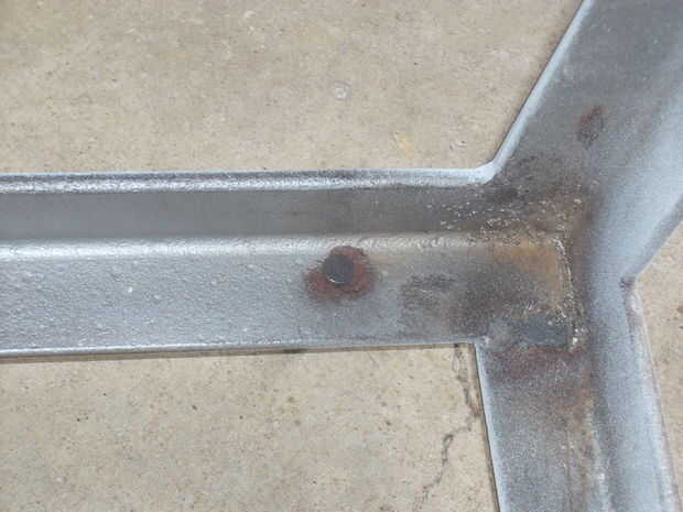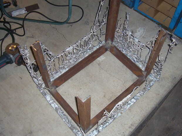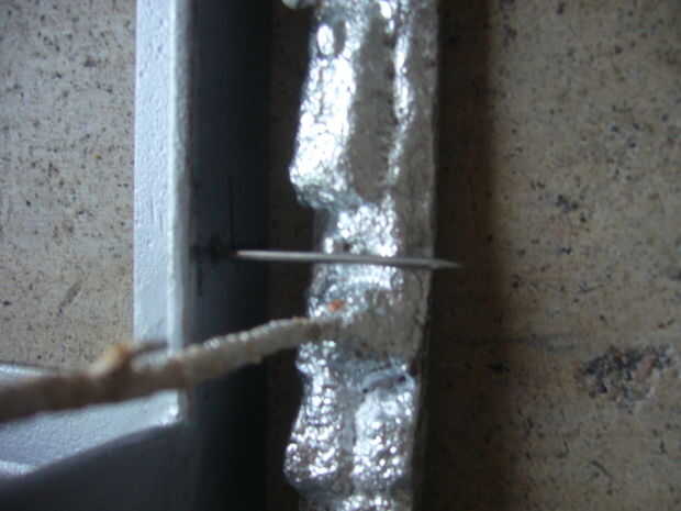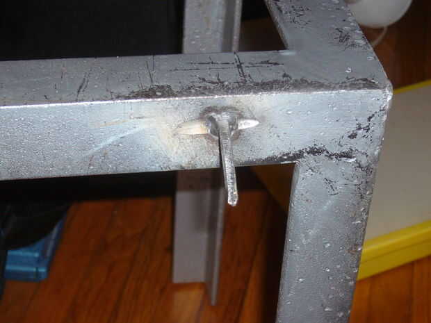 Lo último que necesitaba para soldar fueron algunas clavijas para sostener el zinc .after pesando las opciones fui con algunos clavos. Colocado el marco interno de trabajo hacia abajo en marco de zinc que también fue boca abajo y luego marcado en la estructura fueron los soportes necesarios para ir. Luego perforé un de un agujero de pulgadas en bastidor y coloca un clavo lanzaron cada uno (total cuatro) y soldado luego en .ground el exceso y doblado según sea necesario para sostener los túneles ligeramente por debajo de la parte superior de la obra de marco de metal