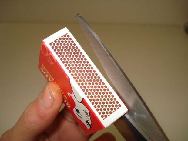 Primero retire la bandeja de la caja de fósforos y corte a lo largo del lado de la zona de delantero que está en la parte posterior de la caja de fósforos.