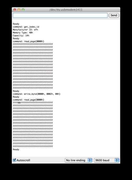 Yo pude también emitieron "chip_erase;" y luego "read_page 0;" para ilustrar un ciclo de borrado, pero esperemos que usted consigue el cuadro.