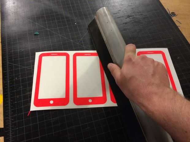Después de quitar todo el espacio sobrante adhesivo, cubre el diseño con papel de contacto. Asegúrese de que usted no consigue burbujas de aire bajo su papel de contacto. Utilizar la escobilla de goma para suavizar el papel de contacto.