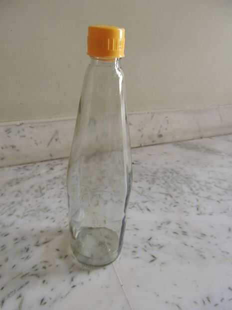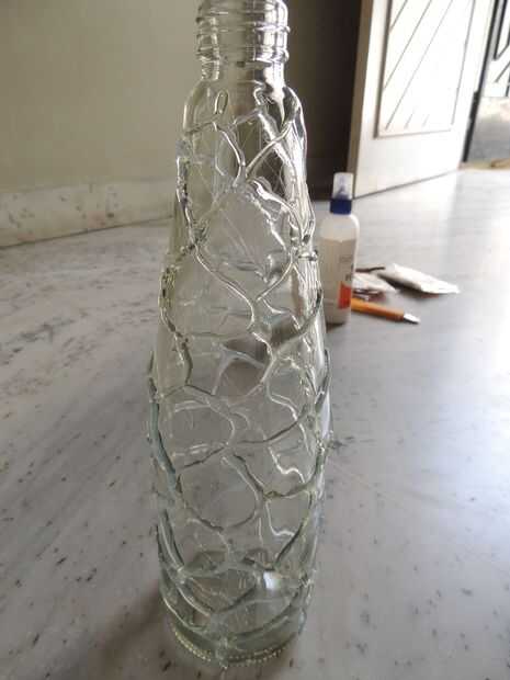2. ahora uso la pistola de pegamento caliente para hacer el patrón (el patrón debe repetirse a través hacia fuera de la botella) consulte la foto.