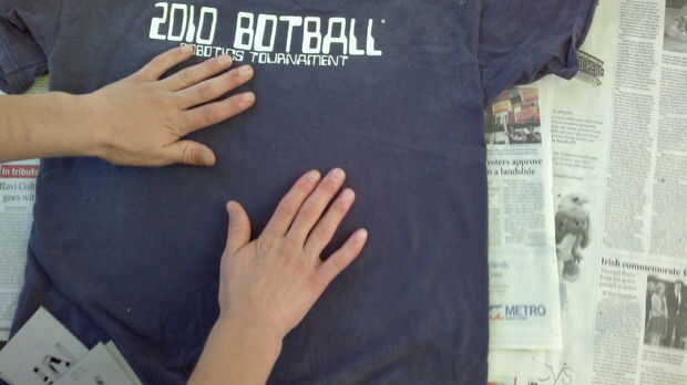 La camiseta cambia color inmediatamente. Después de unos 30 segundos Retire la cartulina de la camisa.