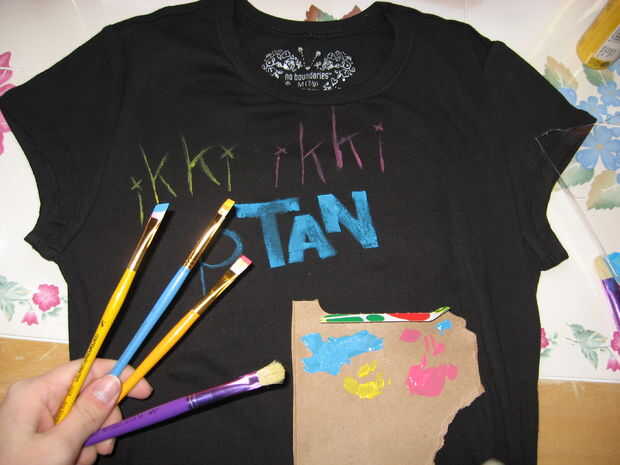 ayudó a mi hermana hacer unas camisetas para ella y su amigo.Paso 1: fuentes deTodo lo que realmente necesita para este proyecto es algunas camisetas blanco baratas (fuimos a Walgreens), algunos de cartón, un cuchillo viejo, algunas chinchetas, un ro