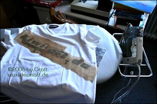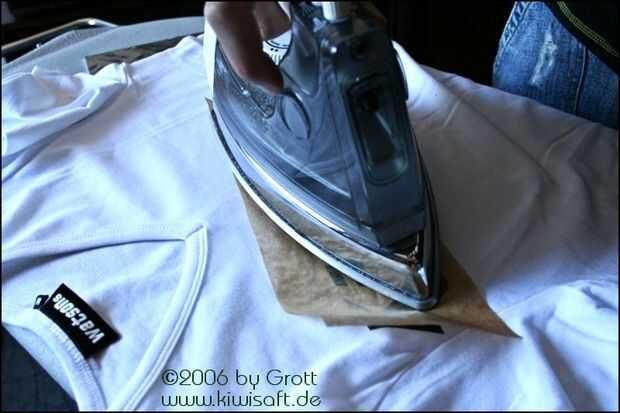 Antes de planchar te debe probar la posición del motivo sobre la tela completa - todavía manejar con cuidado.