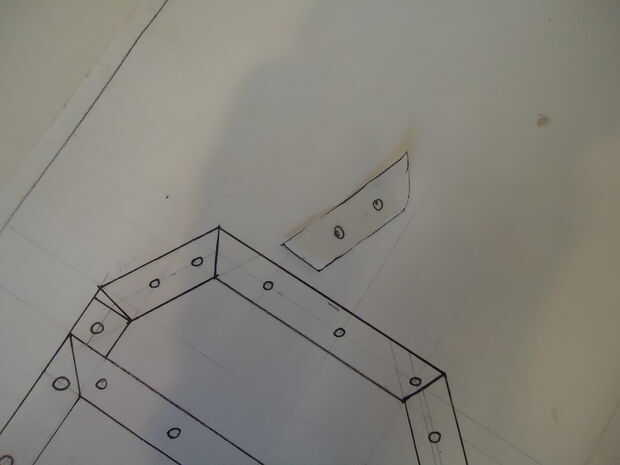 Si está poniendo un parte con las caras angulosas, por ejemplo, para determinar las longitudes de los lados, tienes que usar trigonometría. ¿Somos metalúrgicos o matemáticos aunque? Qué es el borrador hacia fuera exactamente. Sé la medida base, conozco los ángulos, y yo puedo dibujar las intersecciones. A partir de ahí, establecer las distancias de punto a punto con su divisor, grabado sobre el metal e ir de allí. Es mucho más rápido para no matemáticas como yo. Si usted necesita tener fichas de bordes en una pieza con estas clases de ángulos, divida la medida del ángulo interior por 2, marcar en su proyecto e ir de allí. Mucho más fácil!