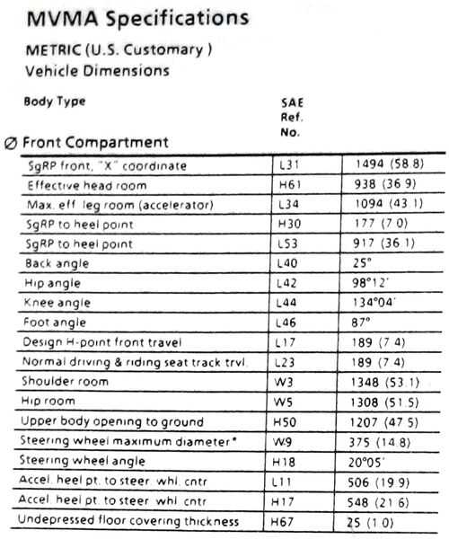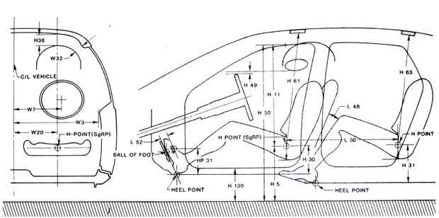 El J1100 estándar de la sociedad de ingenieros automotrices (SAE) ha estandarizado diferentes dimensiones para el espacio disponible para el conductor y los pasajeros en los coches: es difícil encontrar valores para estas dimensiones en J1100