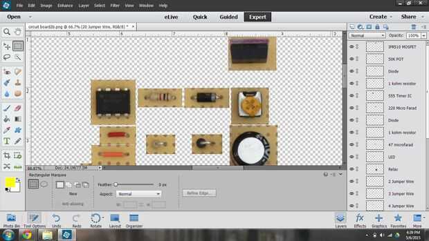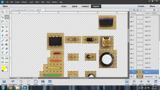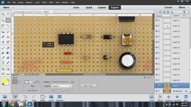 Hacer invisible la capa con las piezas combinadas. Asegúrese de que la capa con el tablero en blanco es la parte inferior la mayoría de la capa o el fondo. Todas las piezas que ahora son visibles deben ser en capas separadas que se pueden mover en forma independiente. Al tener la placa de circuito en blanco visible detrás de las otras partes, puede efectivamente moverles alrededor de la Junta. Esto le permite organizar y reorganizar los componentes para encontrar la mejor configuración.
