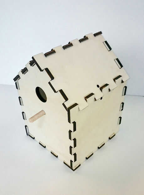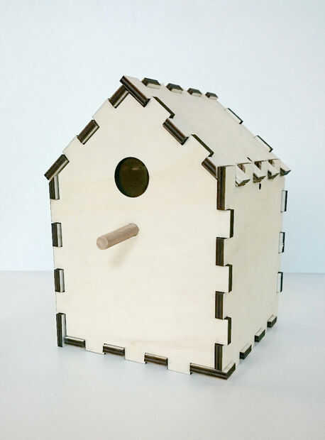 Añadir alguna cadena a él usando los orificios pequeños en el lado de la casa de pájaros y colgar la casa en el árbol.
